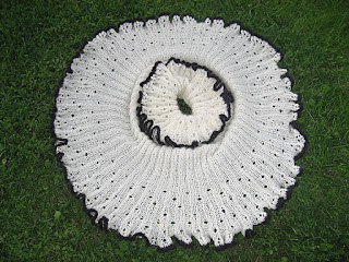 Hvit Poncho i Kid Silk og Baby Alpaca Silk strikket sammen. Garn og mønster er fra Drops. Dette er også en bestilling.